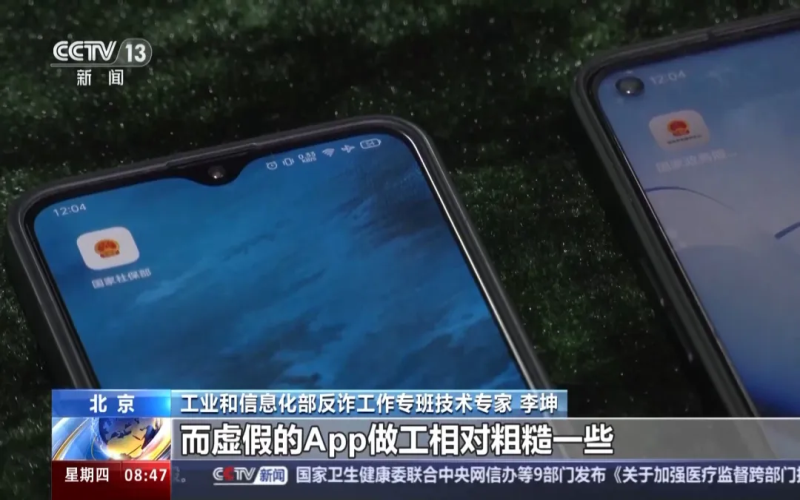 工業(yè)和信息化部反詐工作專班技術(shù)專家 李坤:大家可以看到這兩個(gè)手機(jī),其中左邊是我們發(fā)現(xiàn)的一個(gè)虛假App,它的名稱叫國家社保部,圖標(biāo)采用的是一個(gè)國徽的樣式。右邊是真正的一個(gè)App,名字叫國家政務(wù)服務(wù)中心。這兩個(gè)App在圖標(biāo)上簡單一看十分相似,但是通過仔細(xì)看可以觀察到,在真實(shí)的App上,它的顏色包括文字都更加清晰,而虛假的App做工相對(duì)粗糙一些。我們?cè)倏匆幌吕锩娴男畔?,首先在真正的這些App上,可能會(huì)有一些比較復(fù)雜的功能,包括頁面設(shè)計(jì)比較精美。在假的App上會(huì)直接邀請(qǐng)你去登錄,而且登錄通常需要注冊(cè)賬號(hào),在注冊(cè)賬號(hào)的場(chǎng)景下邀請(qǐng)你填入推薦人的邀請(qǐng)碼。像這種邀請(qǐng)碼基本上就是定向詐騙,只有詐騙分子給了你這個(gè)特定的邀請(qǐng)碼之后才能進(jìn)入這個(gè)平臺(tái)。